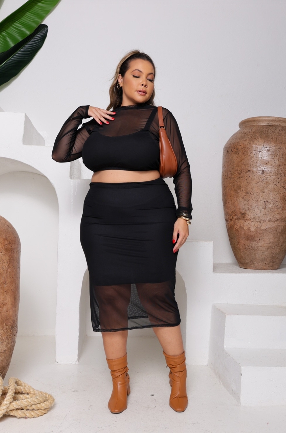 Transforme seu guarda-roupa com o Conjunto Saia e Cropped em Tule com Forro Plus Size e sinta-se linda e confiante em qualquer lugar!